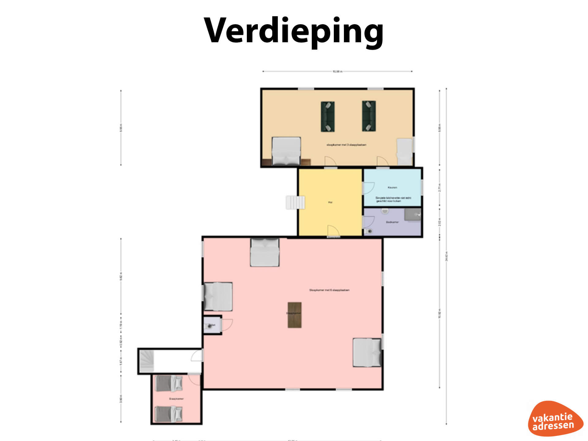 Slaapkamer 4: 1x 2-persoonsbed + 1x 1-persoonsbed + 1x onderschuifbed