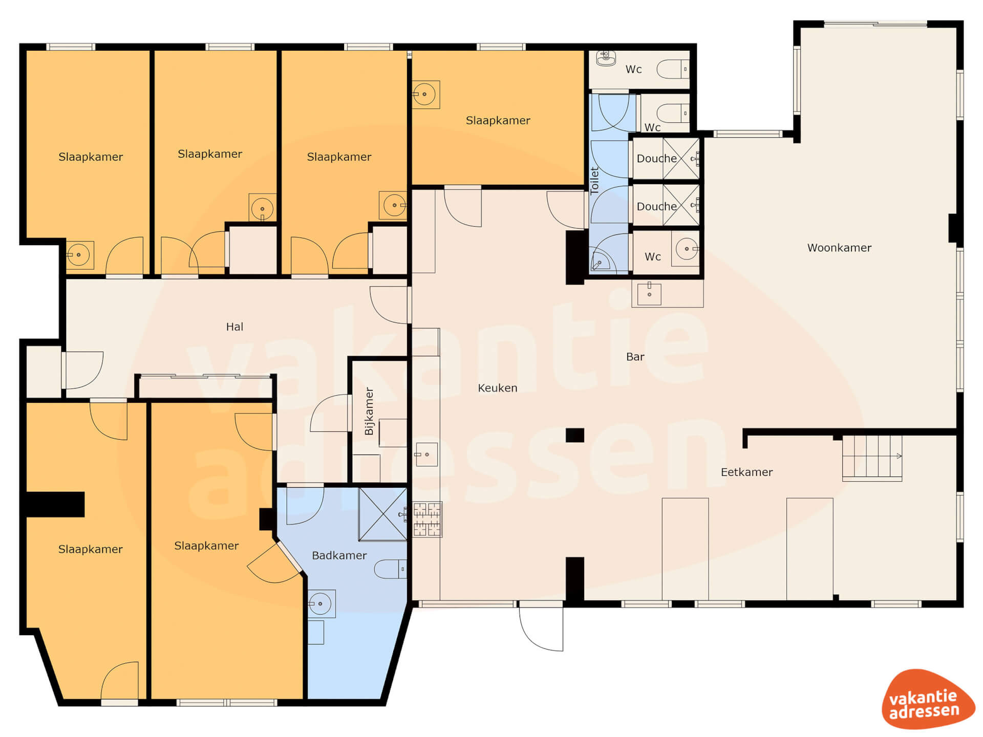 Appartement (Let op: groepen tot en met 18 personen kunnen gebruik maken van 7 slaapkamers. Grotere groepen kunnen gebruik maken van 9 slaapkamers)