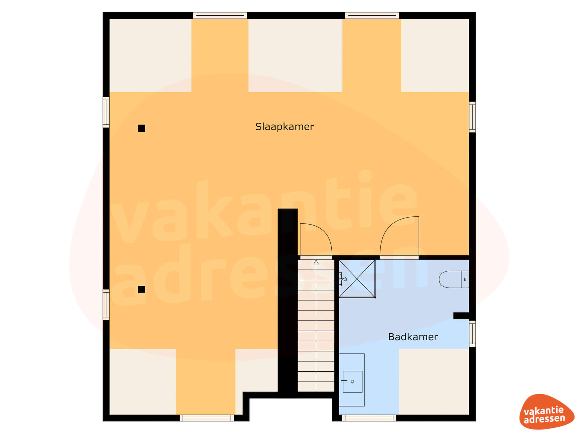 In totaal zijn er 7 slaapkamers en 4 douches. Alle kamers zijn voorzien van luxe 1-persoons boxsprings (enkele boxsprings zijn 210cm). Op de begane grond een 2-persoons slaapkamer en badkamer met douche, toilet en wastafel. Op de eerste verdieping vier 2-persoons kamers, één ruime 4-persoons kamer met balkenplafond (aan iedere kant van de slaapkamer staan twee 1-persoonsbedden) en een super de luxe badkamer met 2 regendouches, dubbele wastafel en toilet. Op de tweede verdieping een ruime 4-persoons kamers met houten balkenplafond, badkamer met douche, toilet en wastafel en een zitje met twee fauteuils en TV. Aan iedere kant van de slaapkamer staan twee 1-persoonsbedden.